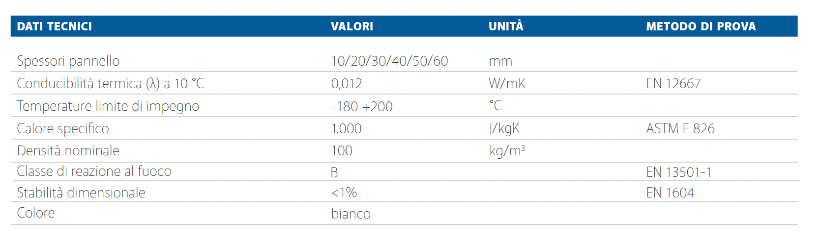 Efficienza energetica superiore: λ = 0,012 W/mK → fino al 20% in più rispetto ai pannelli isolanti in Aerogel tradizionali.